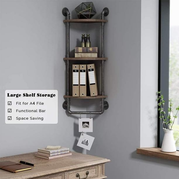 Industrial Pipe Corner Shelves Rustic Wall Mount Corner Floating Shelf 3 Tiers Towel Racks For Bathroom Diy Open Bookshelves Metal Hung Bracket Bookcase Real Wood Storage Shelving Walmart Ca